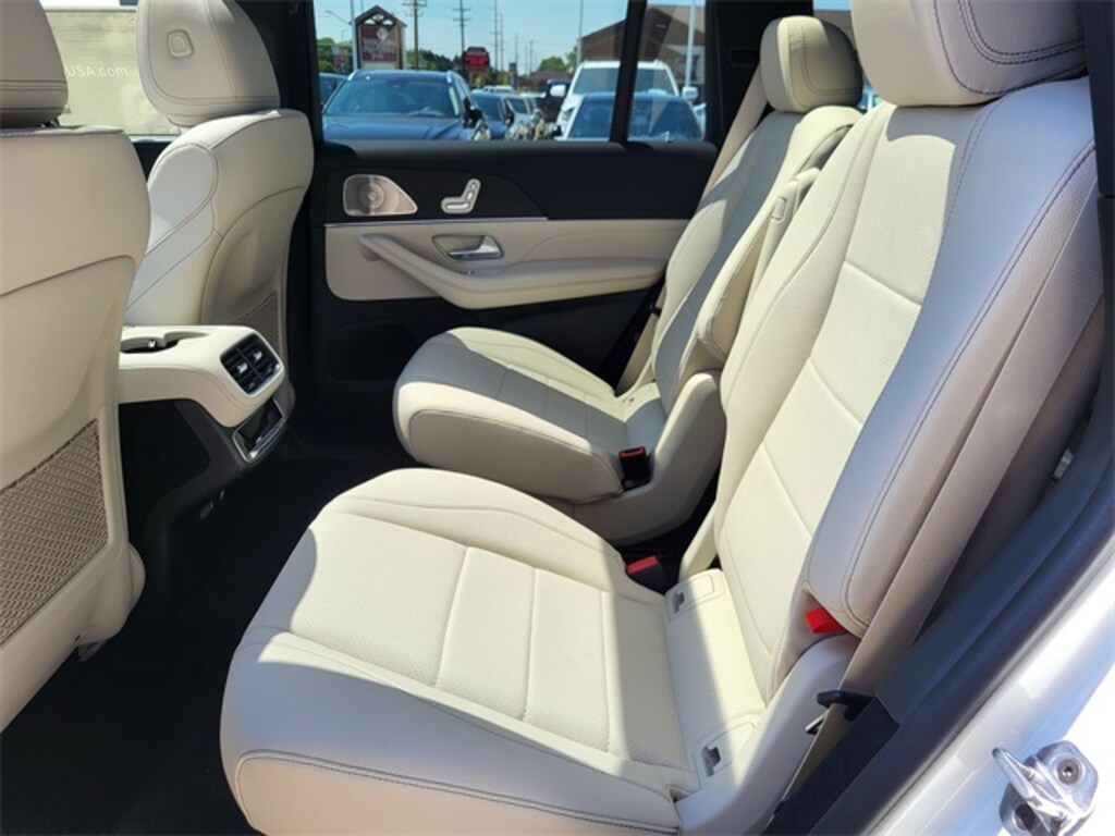 13 Speakers, 3rd row seats: split-bench, 4-Wheel Disc Brakes, 7-Seat Configuration, ABS brakes, Adaptive suspension, Air Conditioning, Alloy wheels, AM/FM radio: SiriusXM, Apple CarPlay®/Android Auto®, Auto High-beam Headlights, Auto tilt-away steering wheel, Auto-dimming door mirrors, Auto-dimming Rear-View mirror, Auto-leveling suspension, Automatic temperature control, Brake assist, Bumpers: body-color, Child-Seat-Sensing Airbag, Compass, Delay-off headlights, Driver door bin, Driver vanity mirror, Dual front impact airbags, Dual front side impact airbags, Electronic Stability Control, Emergency communication system: eCall Emergency System, Exterior Parking Camera Rear, Four wheel independent suspension, Front anti-roll bar, Front Bucket Seats, Front Center Armrest w/Storage, Front dual zone A/C, Front reading lights, Fully automatic headlights, Garage door transmitter: HomeLink, Head restraints memory, Heated and Ventilated Power Front Seats w/Memory, Heated door mirrors, Heated front seats, Illuminated entry, Knee airbag, Leather steering wheel, Low tire pressure warning, MB-Tex Upholstery, Memory seat, Navigation system: MB Navigation, Occupant sensing airbag, Outside temperature display, Overhead airbag, Overhead console, Panic alarm, Passenger door bin, Passenger vanity mirror, Power adjustable front head restraints, Power door mirrors, Power driver seat, Power Liftgate, Power moonroof: Panorama, Power passenger seat, Power steering, Power windows, Premium audio system: MBUX, Radio: Burmester® Surround Sound System, Rain sensing wipers, Rear air conditioning, Rear anti-roll bar, Rear dual zone A/C, Rear fog lights, Rear reading lights, Rear seat center armrest, Rear window defroster, Rear window wiper, Remote keyless entry, Security system, Speed control, Speed-sensing steering, Speed-Sensitive Wipers, Split folding rear seat, Spoiler, Steering wheel memory, Steering wheel mounted audio controls, Tachometer, Telescoping steering wheel, Tilt steering wheel, Traction control, Trip computer, Turn signal indicator mirrors, Variably intermittent wipers, Ventilated front seats, Weather band radio, Wheels: 21" Triple 5-Spoke.