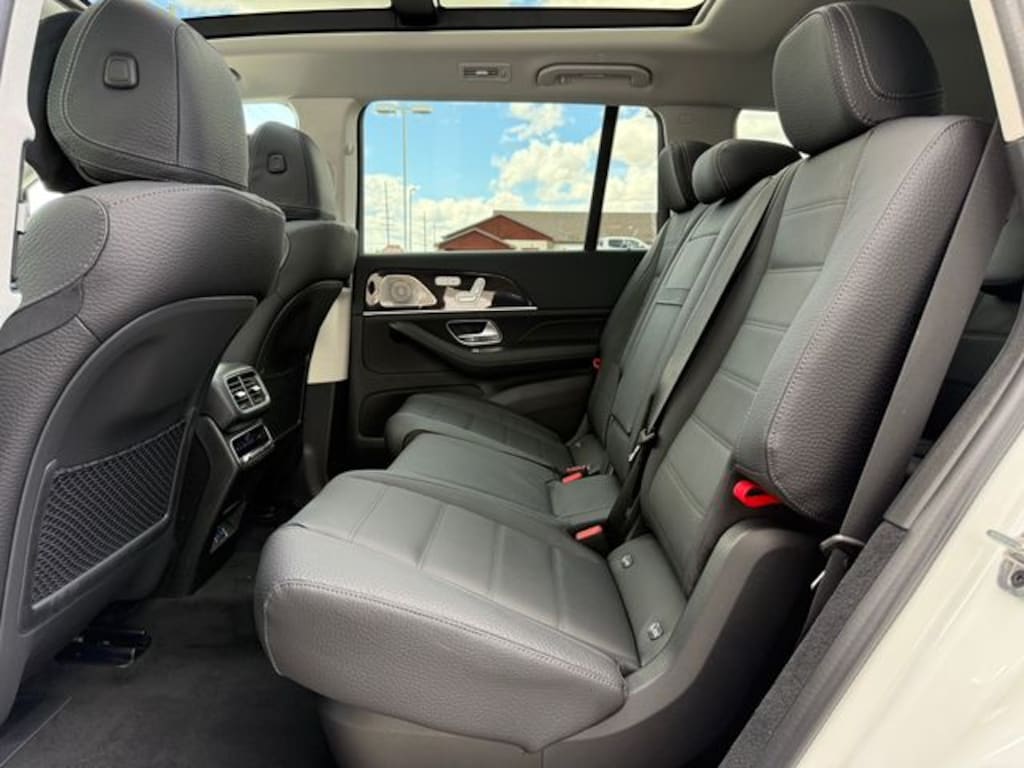 13 Speakers, 3rd row seats: split-bench, 4-Wheel Disc Brakes, 7-Seat Configuration, ABS brakes, Adaptive suspension, Air Conditioning, Alloy wheels, AM/FM radio: SiriusXM, Apple CarPlay®/Android Auto®, Auto High-beam Headlights, Auto tilt-away steering wheel, Auto-dimming door mirrors, Auto-dimming Rear-View mirror, Auto-leveling suspension, Automatic temperature control, Brake assist, Bumpers: body-color, Child-Seat-Sensing Airbag, Compass, Delay-off headlights, Driver door bin, Driver vanity mirror, Dual front impact airbags, Dual front side impact airbags, Electronic Stability Control, Emergency communication system: eCall Emergency System, Exterior Parking Camera Rear, Four wheel independent suspension, Front anti-roll bar, Front Bucket Seats, Front Center Armrest w/Storage, Front dual zone A/C, Front reading lights, Fully automatic headlights, Garage door transmitter: HomeLink, Head restraints memory, Heated and Ventilated Power Front Seats with Memory, Heated door mirrors, Heated front seats, Illuminated entry, Knee airbag, Leather steering wheel, Low tire pressure warning, MB-Tex Upholstery, Memory seat, Navigation system: MB Navigation, Occupant sensing airbag, Outside temperature display, Overhead airbag, Overhead console, Panic alarm, Passenger door bin, Passenger vanity mirror, Power adjustable front head restraints, Power door mirrors, Power driver seat, Power Liftgate, Power moonroof: Panorama, Power passenger seat, Power steering, Power windows, Premium audio system: MBUX, Radio: Burmester® Surround Sound System, Rain sensing wipers, Rear air conditioning, Rear anti-roll bar, Rear dual zone A/C, Rear fog lights, Rear reading lights, Rear seat center armrest, Rear window defroster, Rear window wiper, Reclining 3rd row seat, Remote keyless entry, Security system, Speed control, Speed-sensing steering, Speed-Sensitive Wipers, Split folding rear seat, Spoiler, Steering wheel memory, Steering wheel mounted audio controls, Tachometer, Telescoping steering wheel, Tilt steering wheel, Traction control, Trip computer, Turn signal indicator mirrors, Variably intermittent wipers, Ventilated front seats, Weather band radio, Wheels: 21" Triple 5-Spoke.