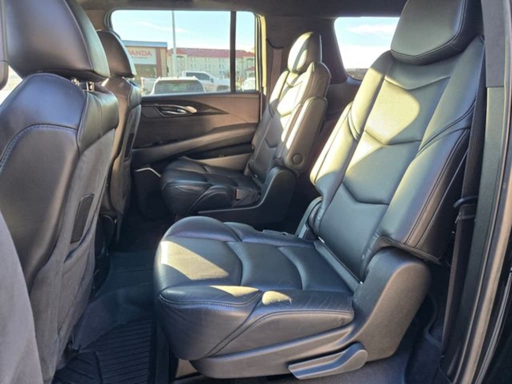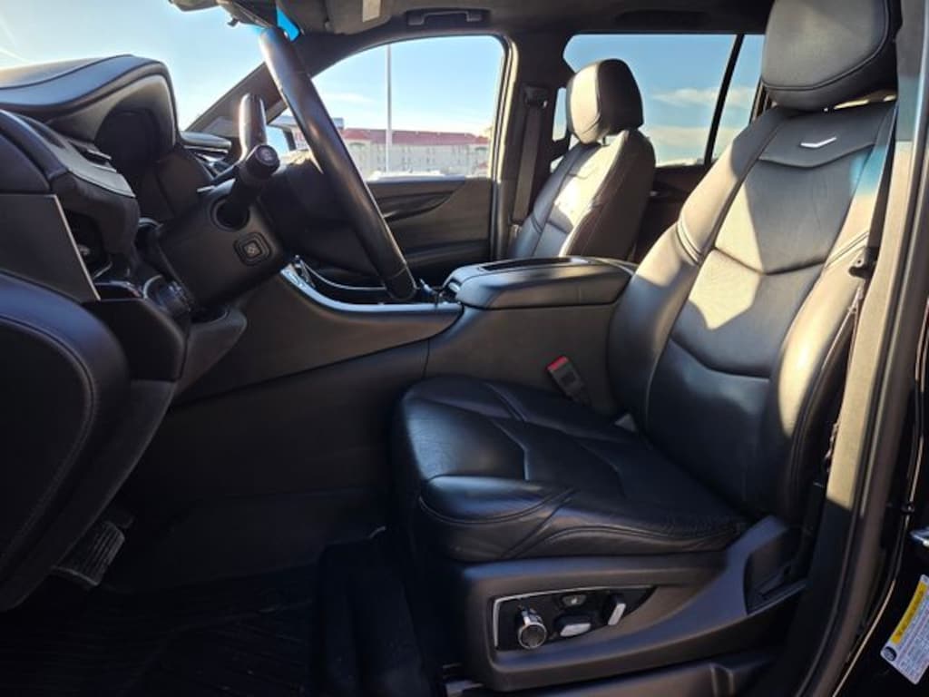 4WD, 12-Way Power Front Passenger Seat Adjuster, 16 Speakers, 2-Presets Memory For Driver Seat Adjuster, 3.23 Axle Ratio, 3rd Row DVD Screen, 3rd row seats: split-bench, 4-Wheel Disc Brakes, A/V remote, ABS brakes, Adaptive suspension, Adjustable pedals, Advanced Adaptive Cruise Control, Air Conditioning, All-Weather Floor Liner Package (LPO), Alloy wheels, AM/FM radio: SiriusXM, Apple CarPlay/Android Auto, Auto High-beam Headlights, Auto tilt-away steering wheel, Auto-dimming door mirrors, Auto-dimming Rear-View mirror, Auto-leveling suspension, Automatic Seat Belt Tightening, Automatic temperature control, Black Front License Plate Bracket, Bodyside moldings, Bose Centerpoint 16 Speaker Surround Sound System, Brake assist, Bumpers: body-color, Compass, Cooled Console w/Covered Storage, Delay-off headlights, Driver Assist Package, Driver Awareness Package, Driver door bin, Driver vanity mirror, Dual front impact airbags, Dual front side impact airbags, Electronic Powered Parking Brake, Electronic Stability Control, Emergency communication system: OnStar and Cadillac connected services capable, Enhanced Automatic Emergency Braking, Exterior Parking Camera Rear, Forward Collision Alert, Front anti-roll bar, Front Bucket Seats, Front Center Armrest w/Storage, Front Cornering Lamps, Front dual zone A/C, Front reading lights, Front wheel independent suspension, Fully automatic headlights, Garage door transmitter, Genuine wood dashboard insert, HD Radio, Headphones, Heads-Up Display, Heated & Cooled Driver & Front Passenger Seats, Heated door mirrors, Heated front seats, Heated rear seats, Heated steering wheel, Illuminated entry, Illuminating Door Handles, Inclination Sensor, IntelliBeam Automatic High Beam On/Off, Lane Change Alert w/Side Blind Zone Alert, Lane Keep Assist w/Lane Departure Warning, Leather Shift Knob, Leather steering wheel, Leather Wrapped IP/Console/Door, Low tire pressure warning, Magnetic Ride Control Suspension, Memory seat, Microfiber Sueded Headliner, Navigation System, Occupant sensing airbag, Outside temperature display, Overhead airbag, Overhead console, Panic alarm, Passenger door bin, Passenger vanity mirror, Pedal memory, Platinum Package, Platinum Sill Plates, Polished Exhaust Tip, Power Configurable Second Row Bucket Seats, Power door mirrors, Power driver seat, Power Liftgate, Power moonroof, Power passenger seat, Power steering, Power Tilt-Sliding Sunroof w/Express-Open/Close, Power windows, Preferred Equipment Group 1SD, Premium Floor Mats, Radio data system, Radio: AM/FM Cadillac User Experience w/Nav, Rain sensing wipers, Rear air conditioning, Rear anti-roll bar, Rear audio controls, Rear Camera Mirror, Rear Camera Mirror Washer, Rear Cross Traffic Alert, Rear reading lights, Rear Seat Entertainment System, Rear window defroster, Rear window wiper, Reconfigurable 4-Color Head-Up Display, Remote keyless entry, Reverse Automatic Braking, Safety Alert Seat, Security system, Semi-Aniline Leather Seating Surfaces, SiriusXM NavTraffic, SiriusXM Radio, Speed control, Split folding rear seat, Spoiler, Steering wheel memory, Steering wheel mounted audio controls, Sumi Black Tamo Ash Unique Exotic Wood, Tachometer, Telescoping steering wheel, Theft-Deterrent Alarm System, Theft-Deterrent Package, Tilt steering wheel, Traction control, Trip computer, Turn signal indicator mirrors, Unique Grille Design, VAC Power 17" Disc Brakes, Variably intermittent wipers, Vehicle Interior Movement Sensor, Ventilated front seats, Wheel Locks, Wheels: 22" x 9" Dual 9-Spoke Alloy w/Chrome Inserts, 4WD.
