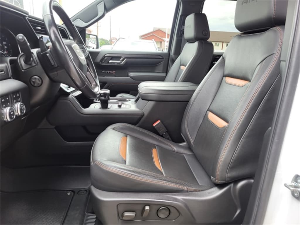 10-Speed Automatic, 4WD, Jet Black With Kalahari Accents Leather, 10-Way Power Driver Seat Adjuster w/Lumbar, 10-Way Power Passenger Seat Adjuster w/Lumbar, 120-Volt Bed Mounted Power Outlet, 120-Volt Instrument Panel Power Outlet, 18" x 8.5" Machined Aluminum Wheels, 2 Charge/Data USB Ports Inside Center Console, 2 Type-C Charge-Only Rear USB Ports, 2 USB Ports, 220 Amp Alternator, 3.23 Rear Axle Ratio, 4-Wheel Disc Brakes, 7 Speakers, ABS brakes, Air Conditioning, Alloy wheels, AM/FM radio, Apple CarPlay/Android Auto, Auto High-beam Headlights, Auto-dimming door mirrors, Auto-dimming Rear-View mirror, Auto-Locking Rear Differential, Automatic Emergency Braking, Automatic temperature control, Black Chrome Header & Grille Insert Bars, Block heater, Brake assist, Buckle to Drive, Bumpers: body-color, Color-Keyed Carpeting Floor Covering, Compass, Deep-Tinted Glass, Delay-off headlights, Driver door bin, Driver Memory, Driver vanity mirror, Dual front impact airbags, Dual front side impact airbags, Electric Rear-Window Defogger, Electrical Steering Column Lock, Electronic Stability Control, Emergency communication system: OnStar and GMC connected services capable, Engine Block Heater, Floor-Mounted Center Console, Following Distance Indicator, Forward Collision Alert, Front anti-roll bar, Front Bucket Seats, Front Center Armrest, Front dual zone A/C, Front fog lights, Front Pedestrian Braking, Front Prem Floor Liners w/Removable Carpet Insert, Front Rainsensing Wipers, Front reading lights, Front wheel independent suspension, Fully automatic headlights, GMC Connected Access Capable, HD Surround Vision, Heated 2nd Row Outboard Seats, Heated door mirrors, Heated Driver & Front Outboard Passenger Seating, Heated front seats, Heated rear seats, Heated steering wheel, Heavy-Duty Air Filter, Hill Descent Control, Hitch Guidance, Hitch Guidance w/Hitch View, Illuminated entry, In-Vehicle Trailering App, Integrated Trailer Brake Controller, IntelliBeam Automatic High Beam On/Off, Keyless Open & Start, Lane Keep Assist w/Lane Departure Warning, LED Cargo Area Lighting, Low tire pressure warning, Memory seat, Navigation System, Not Equipped w/Steering Column Lock, Occupant sensing airbag, Off-Road Suspension, OnStar & GMC Connected Services Capable, Outside temperature display, Overhead airbag, Overhead console, Panic alarm, Passenger door bin, Passenger vanity mirror, Perforated Front Leather Seat Trim, Perimeter Lighting, Power Door Locks, Power door mirrors, Power driver seat, Power Front Passenger Windows w/Express Up/Down, Power Front Windows w/Driver Express Up/Down, Power passenger seat, Power Rake & Telescoping Steering Column, Power Rear Windows w/Express Down, Power steering, Power windows, Preferred Equipment Group 4SB, Premium audio system: GMC Infotainment System, Premium Bose 7-Speaker Sound System, Push Button Start, Radio data system, Radio: Premium GMC Infotainment Audio System, Rain sensing wipers, Rear Cross Traffic Braking, Rear Pedestrian Detection, Rear Prem Floor Liners w/Removable Carpet Insert, Rear reading lights, Rear seat center armrest, Rear step bumper, Rear Wheelhouse Liners, Rear window defroster, Red Recovery Hooks, Remote keyless entry, Remote Vehicle Starter System, Safety Alert Seat, Security system, SiriusXM w/360L, Speed control, Speed-sensing steering, Split folding rear seat, Spray-On Pickup Bed Liner w/AT4 Logo, Steering Wheel Audio Controls, Steering wheel mounted audio controls, Tachometer, Telescoping steering wheel, Theft Deterrent System (Unauthorized Entry), Tilt steering wheel, Traction control, Trailer Camera Provisions, Trailer Side Blind Zone Alert, Trailering Package, Trip computer, Ultrasonic Front & Rear Park Assist, Variably intermittent wipers, Ventilated Driver & Front Passenger Seats, Ventilated front seats, Voltmeter, Wi-Fi Hotspot Capable, Wireless Charging, Wireless Phone Projection, 10-Speed Automatic,